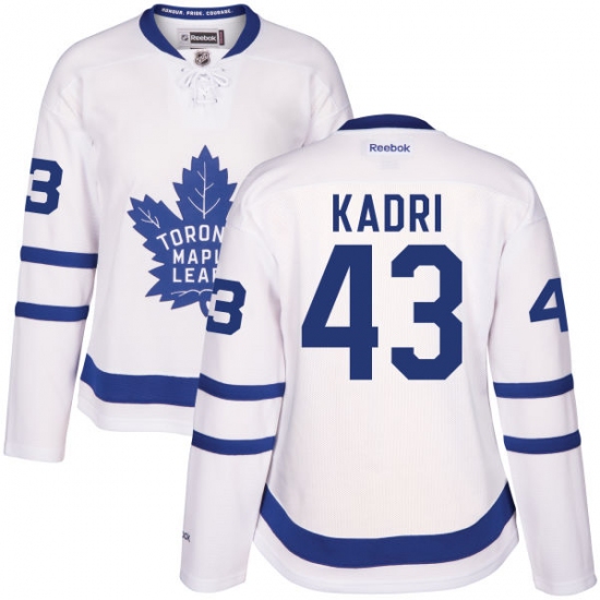 Home>NHL>Toronto Maple Leafs>Nazem Kadri>Women's Reebok Toronto Maple Leafs #43 Nazem Kadri Authentic White Away NHL Jersey