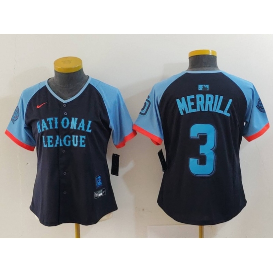>Women's San Diego Padres #3 Jackson Merrill Navy 2024 All Star Limited Stitched Jersey