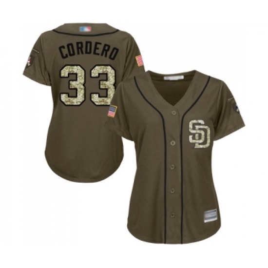 Women's San Diego Padres #33 Franchy Cordero Authentic Green Salute to Service Cool Base Baseball Jersey