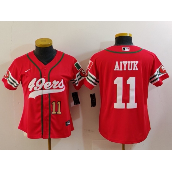 >Women's San Francisco 49ers #11 Brandon Aiyuk Red Mexico Cool Base Stitched Baseball Jerseys