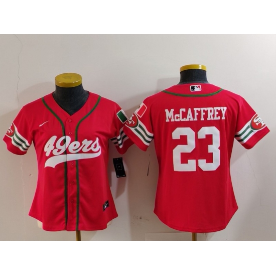 Women's San Francisco 49ers #23 Christian McCaffrey Red Mexico Cool Base Stitched Baseball Jersey