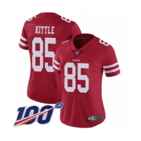 >Women's San Francisco 49ers #85 George Kittle Red Team Color Vapor Untouchable Limited Player 100th Season Football Jersey