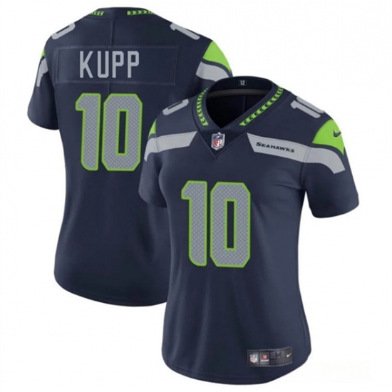 >Women's Seattle Seahawks #10 Cooper Kupp Navy 2025 Vapor Limited Football Stitched Jersey(Run Small)