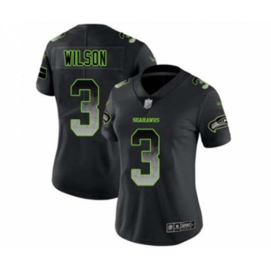 >Women's Seattle Seahawks #3 Russell Wilson Limited Black Smoke Fashion Football Jersey