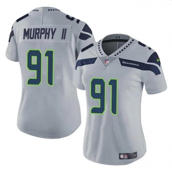 Women's Seattle Seahawks #91 Byron Murphy II 2024 Draft Gray Vapor Limited Football Stitched Jersey(Run Small)