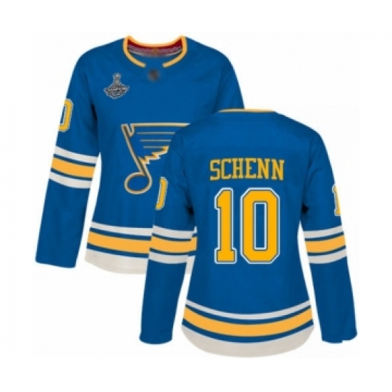 Women's St. Louis Blues #10 Brayden Schenn Authentic Navy Blue Alternate 2019 Stanley Cup Champions Hockey Jersey