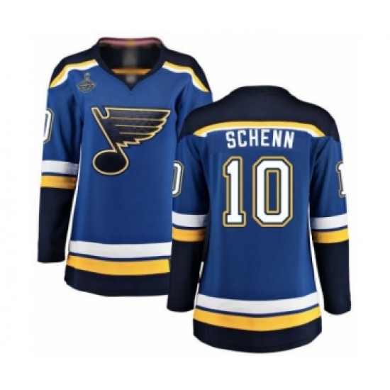 >Women's St. Louis Blues #10 Brayden Schenn Fanatics Branded Royal Blue Home Breakaway 2019 Stanley Cup Champions Hockey Jersey