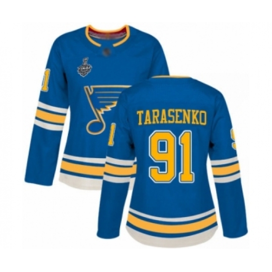 Women's St. Louis Blues #91 Vladimir Tarasenko Authentic Royal Blue Home 2019 Stanley Cup Final Bound Hockey Jersey