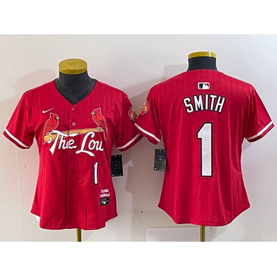 Women's St Louis Cardinals #1 Ozzie Smith Red 2024 City Connect Limited Stitched Baseball Jersey