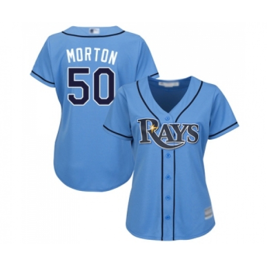 Women's Tampa Bay Rays #50 Charlie Morton Replica Light Blue Alternate 2 Cool Base Baseball Jersey