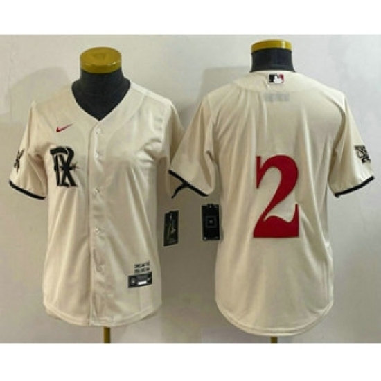 >Women's Texas Rangers #2 Marcus Semien Cream 2023 City Connect Stitched Baseball Jersey