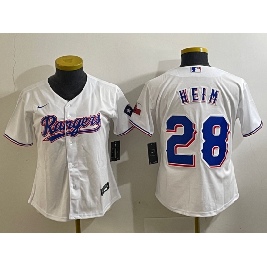 Women's Texas Rangers #28 Jonah Heim White 2023 World Series Champions Cool Base Jersey