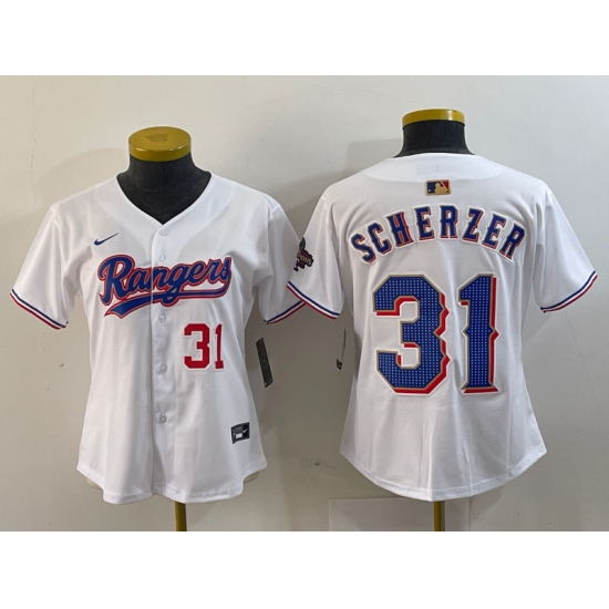 Women's Texas Rangers #31 Max Scherzer Number White 2024 Gold Collection Limited Cool Base Jersey