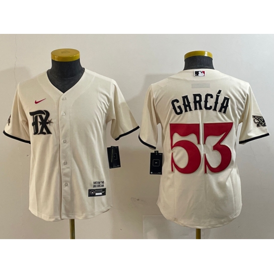 >Women's Texas Rangers #53 Adolis Garcia Cream 2023 City Connect Cool Base Stitched Jersey
