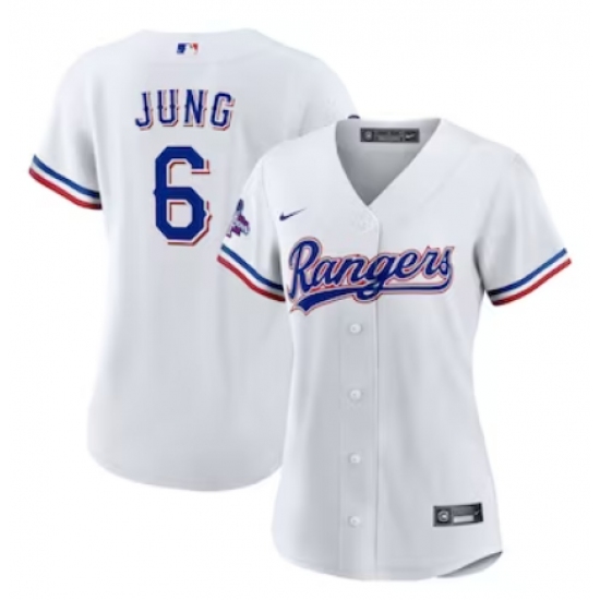 Women's Texas Rangers #6 Josh Jung Nike White Home 2023 World Series Champions Replica Player Jersey