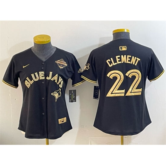Women's Toronto Blue Jays #22 Ernie Clement Black Gold 2025 American League Champions Limited Stitched Baseball Jersey(Run Small)