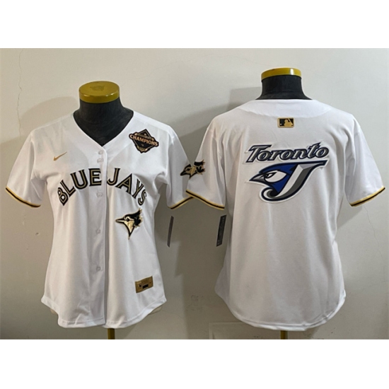 >Women's Toronto Blue Jays Team Big Logo White Gold 2025 American League Champions Limited Stitched Baseball Jersey(Run Small)