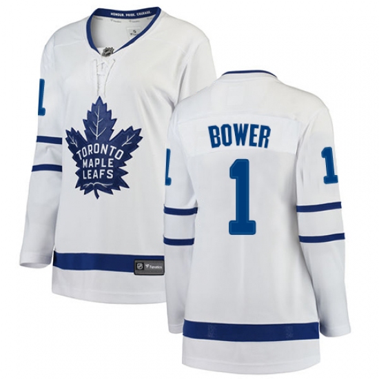 Home>NHL>Toronto Maple Leafs>Johnny Bower>Women's Toronto Maple Leafs #1 Johnny Bower Authentic White Away Fanatics Branded Breakaway NHL Jersey
