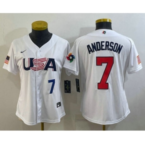 >Women's USA Baseball #7 Tim Anderson Number 2023 White World Classic Stitched Jerseys