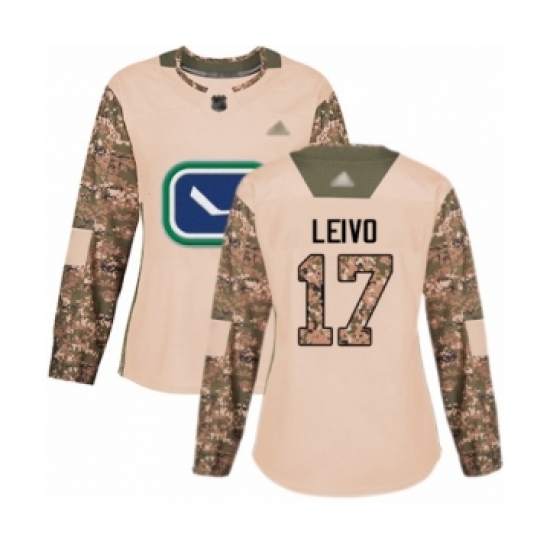 >Women's Vancouver Canucks #17 Josh Leivo Authentic Camo Veterans Day Practice Hockey Jersey