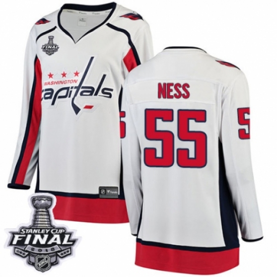 Women's Washington Capitals #55 Aaron Ness Fanatics Branded White Away Breakaway 2018 Stanley Cup Final NHL Jersey