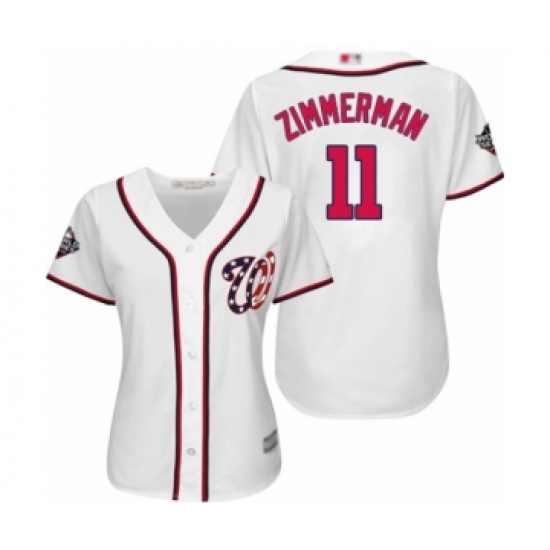 Women's Washington Nationals #11 Ryan Zimmerman Authentic White Home Cool Base 2019 World Series Bound Baseball Jersey