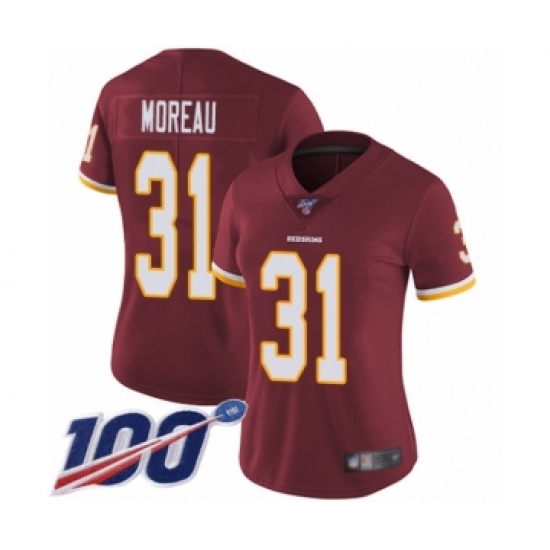 Women's Washington Redskins #31 Fabian Moreau Burgundy Red Team Color Vapor Untouchable Limited Player 100th Season Football Jersey