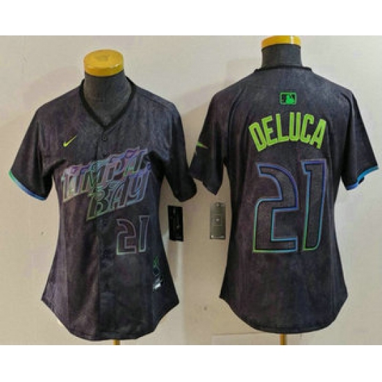Women'sTampa Bay Rays #21 Jonny DeLuca Number Charcoal 2024 City Connect Limited Stitched Jersey