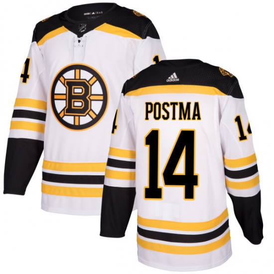 Home>NHL>Boston Bruins>Paul Postma>Youth Adidas Boston Bruins #14 Paul Postma Authentic White Away NHL Jersey