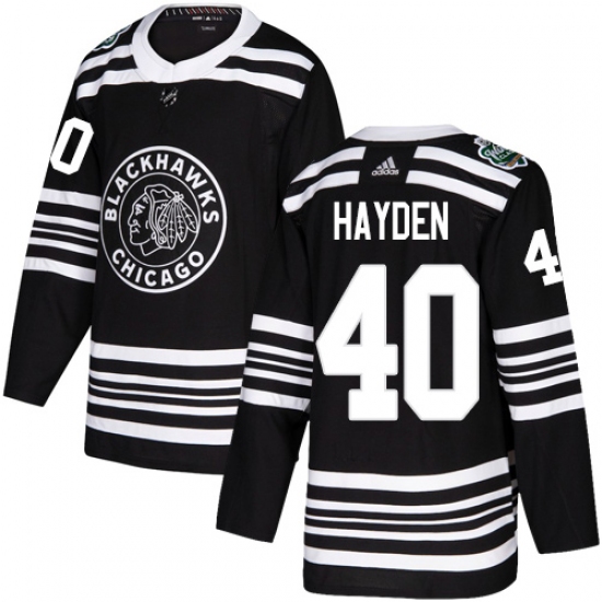 >Youth Adidas Chicago Blackhawks #40 John Hayden Authentic Black 2019 Winter Classic NHL Jersey