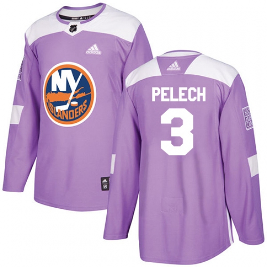 >Youth Adidas New York Islanders #3 Adam Pelech Authentic Purple Fights Cancer Practice NHL Jersey