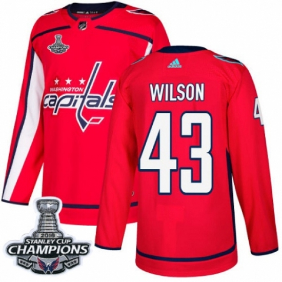 Youth Adidas Washington Capitals #43 Tom Wilson Authentic Red Home 2018 Stanley Cup Final Champions NHL Jersey