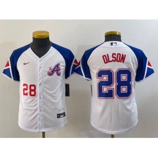 >Youth Atlanta Braves #28 Matt Olson Number White 2023 City Connect Cool Base Stitched Jersey2