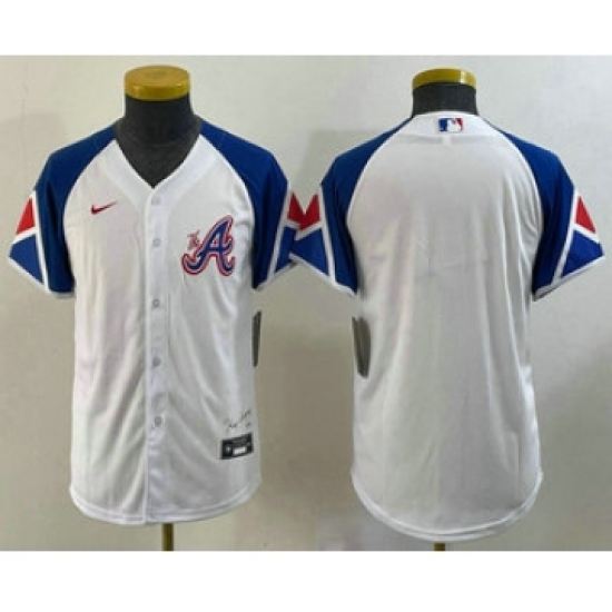 Youth Atlanta Braves Blank White 2023 City Connect Cool Base Stitched Jersey