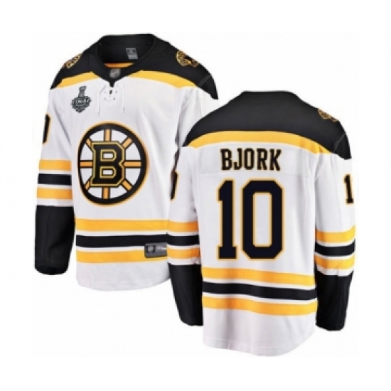 Men's Boston Bruins #10 Anders Bjork Authentic White Away 2019 Stanley Cup Final Bound Hockey Jersey