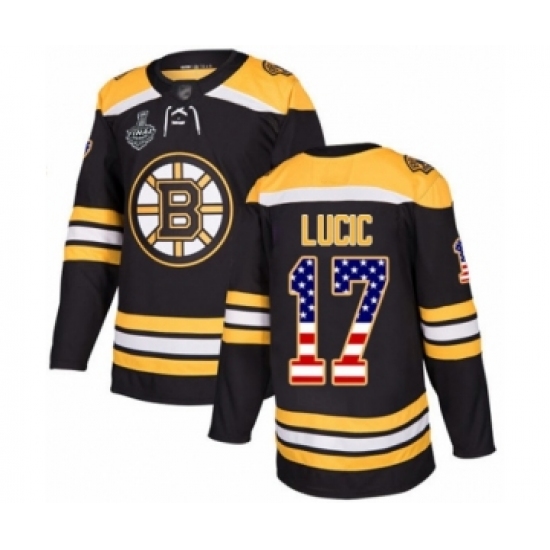 Youth Boston Bruins #17 Milan Lucic Authentic Black USA Flag Fashion 2019 Stanley Cup Final Bound Hockey Jersey