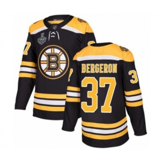 >Youth Boston Bruins #37 Patrice Bergeron Authentic Black Home 2019 Stanley Cup Final Bound Hockey Jersey