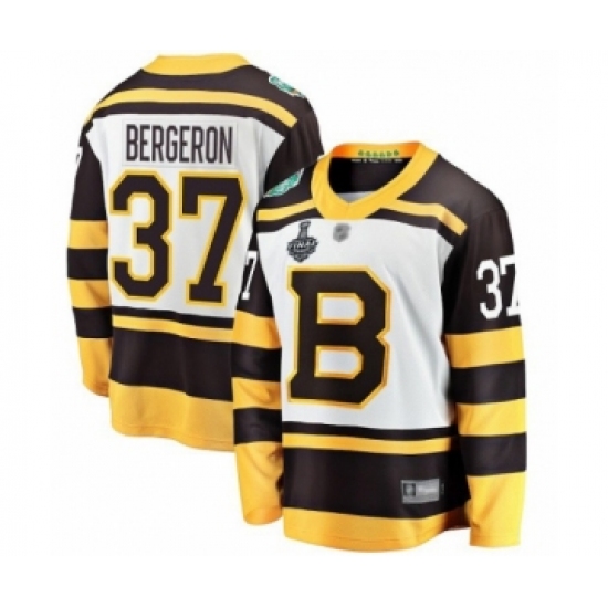 Men's Boston Bruins #37 Patrice Bergeron Authentic White Winter Classic 2019 Stanley Cup Final Bound Hockey Jersey