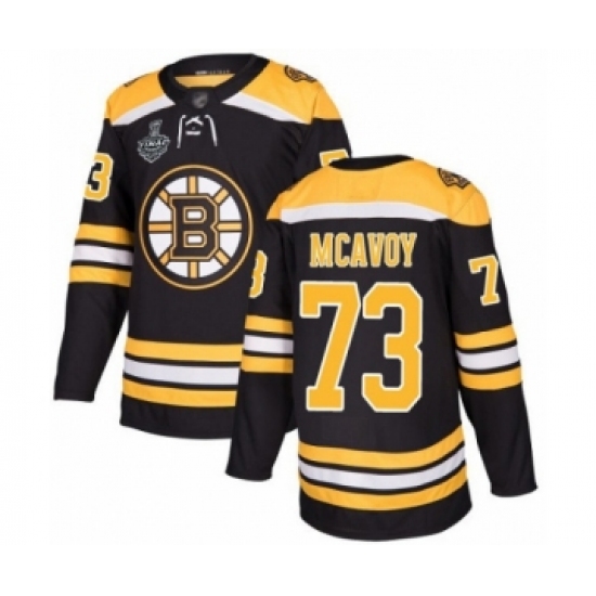 >Youth Boston Bruins #73 Charlie McAvoy Authentic Black Home 2019 Stanley Cup Final Bound Hockey Jersey