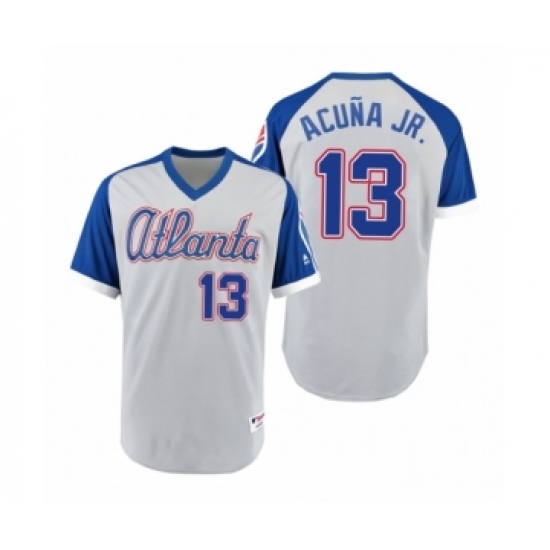 Men's Braves #13 Ronald Acuna Jr. Gray Royal 1979 Turn Back the Clock Authentic Jersey