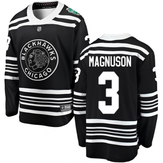 >Youth Chicago Blackhawks #3 Keith Magnuson Black 2019 Winter Classic Fanatics Branded Breakaway NHL Jersey