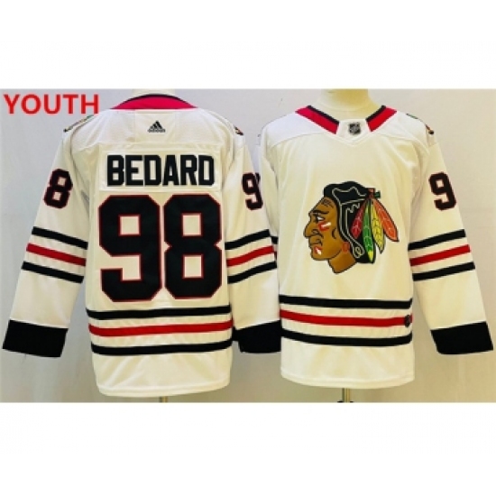 >Youth Chicago Blackhawks #98 Connor Bedard White Black Stitched Jersey