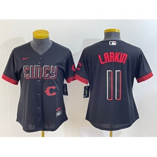 >Youth Cincinnati Reds #11 Barry Larkin Black 2023 City Connect Cool Base Stitched Jersey1