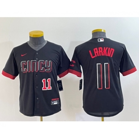 Youth Cincinnati Reds #11 Barry Larkin Number Black 2023 City Connect Cool Base Stitched Jersey
