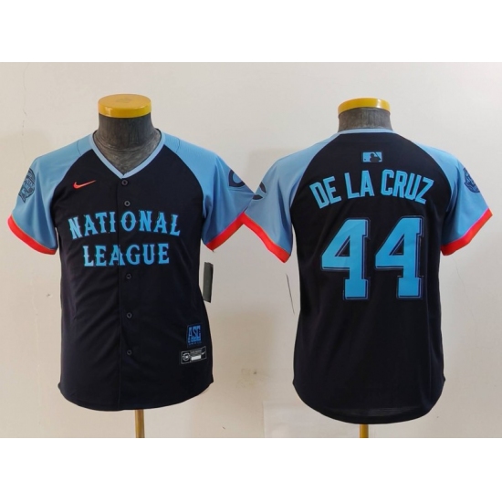 >Youth Cincinnati Reds #44 Elly De La Cruz Navy 2024 All Star Limited Stitched Jersey