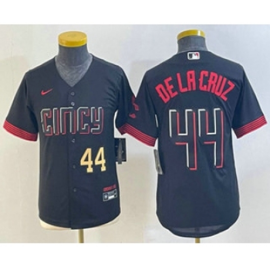Youth Cincinnati Reds #44 Elly De La Cruz Number Black 2023 City Connect Cool Base Stitched Jersey