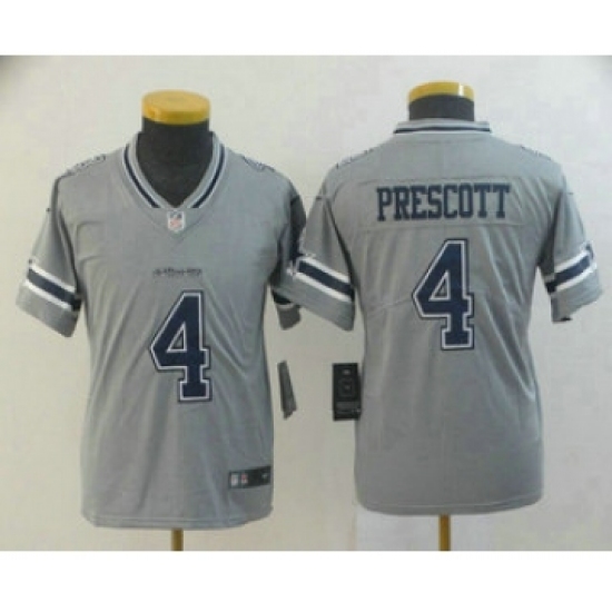 >Youth Dallas Cowboys #4 Dak Prescott Grey 2019 Inverted Legend Stitched NFL Nike Limited Jersey