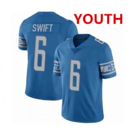 >Youth Detroit Lions #6 D'Andre Swift Blue Vapor Untouchable Limited Stitched Jersey