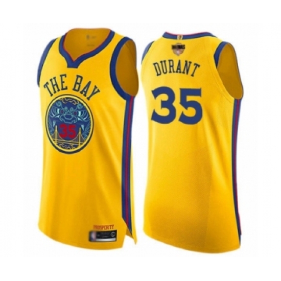 >Youth Golden State Warriors #35 Kevin Durant Swingman Gold 2019 Basketball Finals Bound Basketball Jersey - City Edition