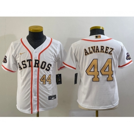 Youth Houston Astros #44 Yordan Alvarez Number 2023 White Gold World Serise Champions Cool Base Stitched Jersey